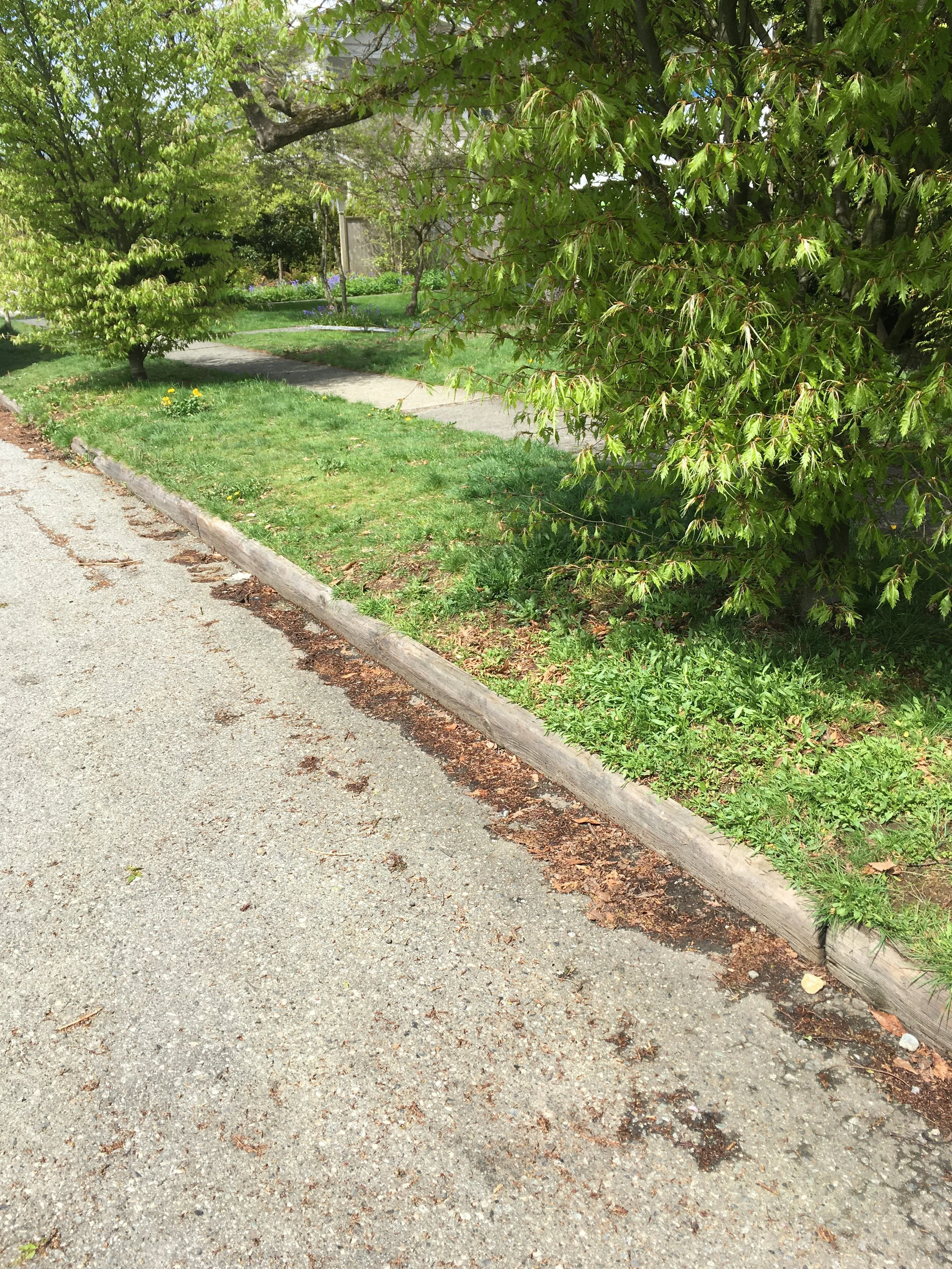 Wooden curb in the 300 block of West 14th Street in North Vancouver. Photo by Jennifer Clay.