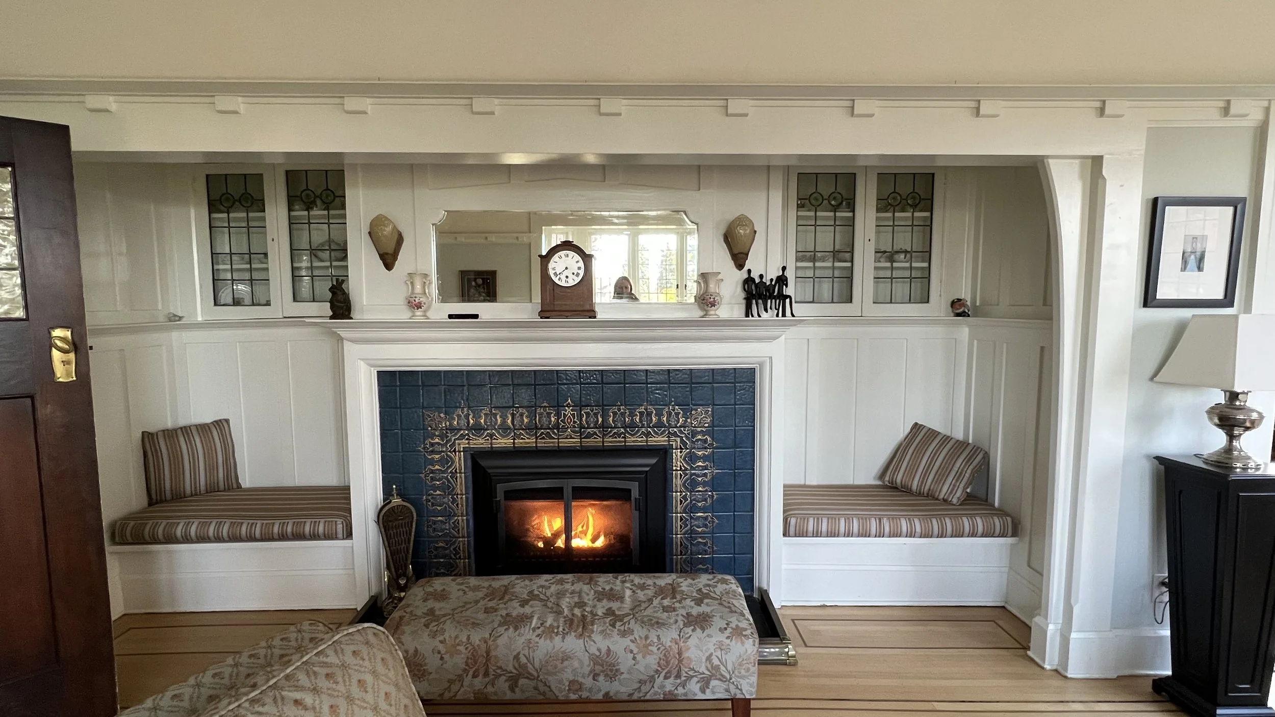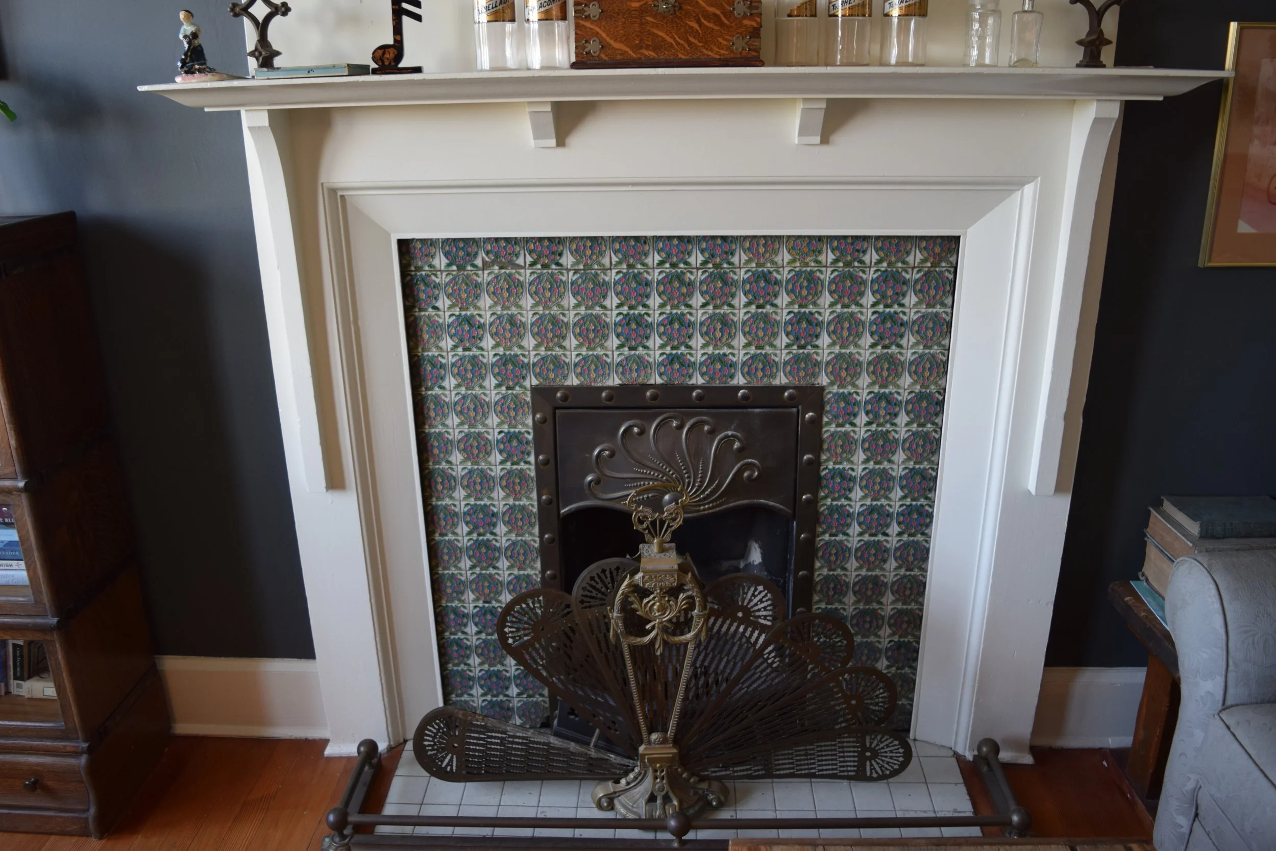 The original hand-painted fireplace and inglenook. Photo courtesy of Jenny Morgan.
