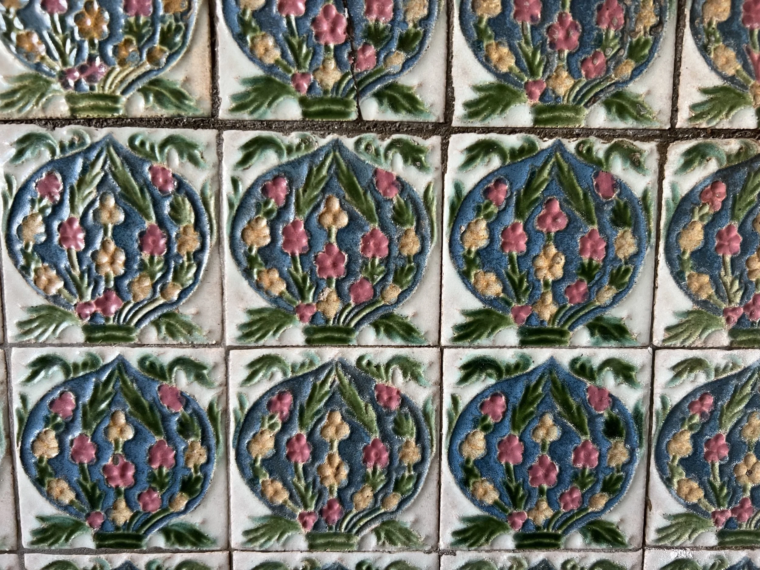 Close-up of glazed fireplace tiles. Photo courtesy of Jenny Morgan.