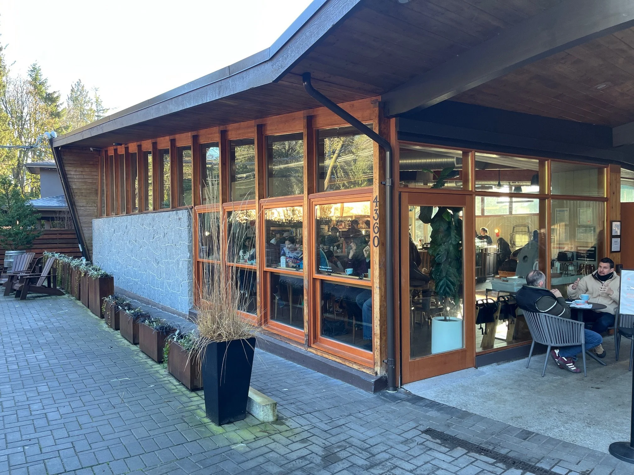 What makes this station particularly compelling is its context. It sits within a remarkable cluster of Mid‑Century Modern buildings that define the character of this stretch of West Vancouver: